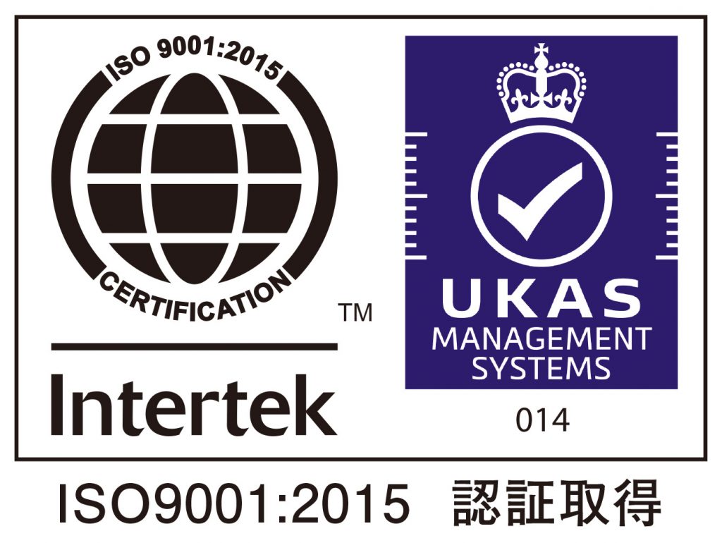 当社では2000年10月に品質マネジメントシステム(ISO9001:1994)に取り組み始め、翌年2001年9月に(財)日本品質保証機構より認証登録を受けました。その後、2010年10月に審査機関を インターテック に変更し、認証登録を受け続けております。